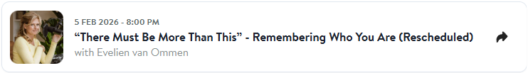 Do you recognise this quiet sense of disconnection or loneliness, even when you are surrounded by others? This feeling is rarely caused by what is happening around you, but reflects a deeper state of being. Disconnection is more than a concept or an emotion; it is an actual frequency, the frequency of separation from your True Being and from your Source, your Divine Parent. I dare to say that much of our reality reflects this separation in a holographic way. In this live session, we create a safe space to meet this frequency with awareness and softness. Through guided presence and an experiential meditation, you are invited to return to your own energy field and inner sense of home. As connection deepens, separation softens, and a natural sense of belonging begins to emerge.